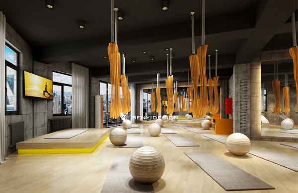 三楼瑜伽区为女性活动区域。所以从灯光到软装饰,都做了更多的暖色调整。